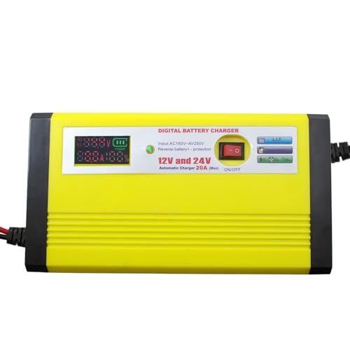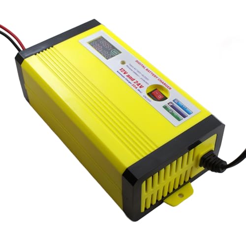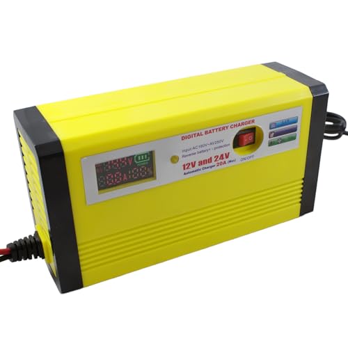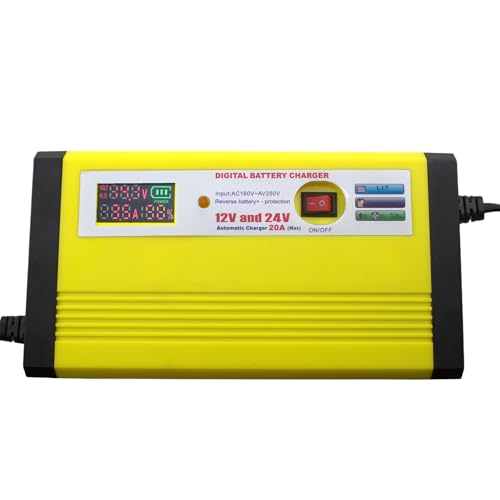 Generic - شاحن بطارية السيارة الرقمي الأوتوماتيكي 12 أو 24 فولت 20 أمبير مع شاشة ديجيتال