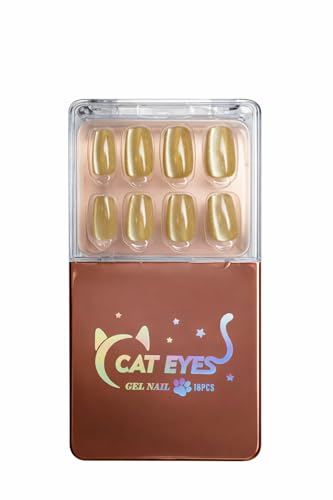 Generic - أظافر تركيب عن طريق الضغط لاصقة بنمط عين القطة، أظافر جل لامعة ببريق ذهبي جاهزة للتركيب