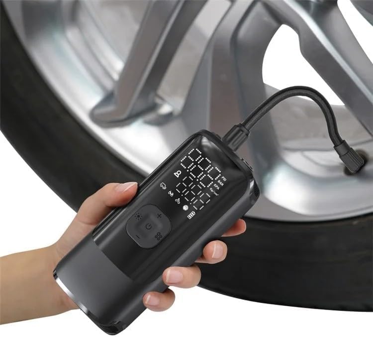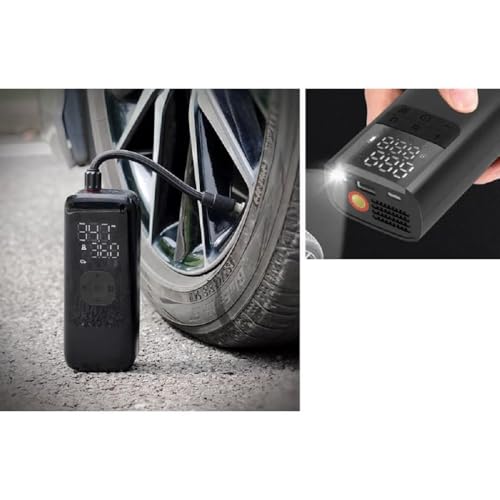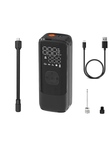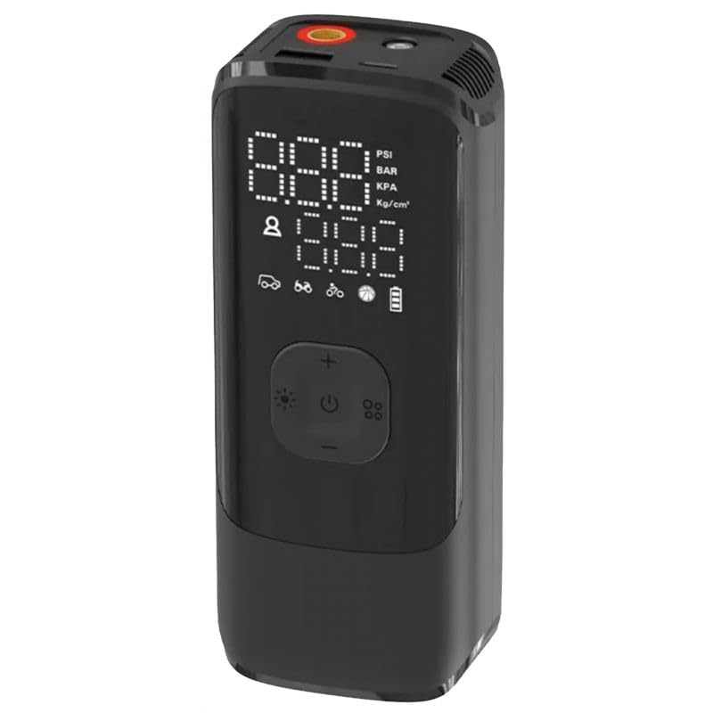 - منفاخ هواء كهربائي ديجيتال صغير محمول قابل لإعادة الشحن وشاشة LED ومعدل ضغط 150 رطل لكل بوصة مربعة لنفخ إطار السيارة والدراجة ومالوتوسيكل والكرة