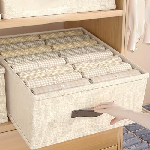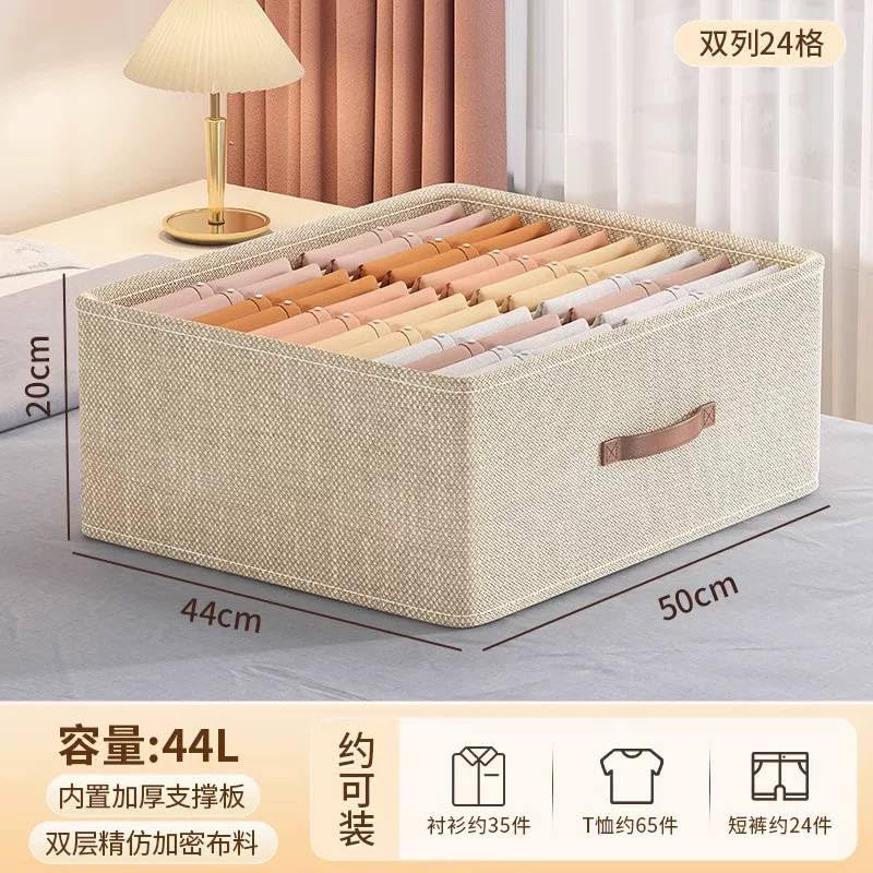 Generic - منظم البلونات الدبل ال16خانة المنظم الأصلي لتنظيم البنطلونات تنظيم التيرتits والمملاية و كيس المخدد..والبلوفر الحجم الجامابوووا الخامه الكتان مستورد مقاس 50 * 44 * 20 سم اللون - بيج