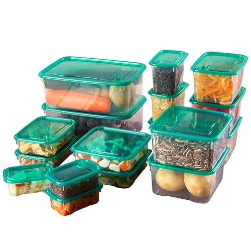 Generic - مجموعة منظم مطبخ محكمة الغلق مكونة من 17 قطعة، حاويات شفافة لتخزين الطعام بأمان، مثالية للحبوب والدقيق والتوابل والمكسرات والفواكه - جودة عالية بلون اخضر مميز