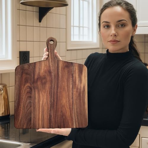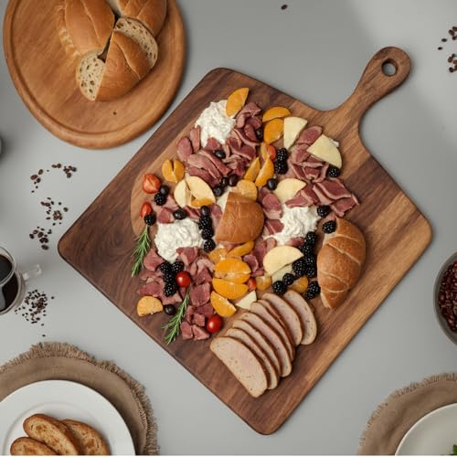HOMGDN - 17" X 13" Acacia Wood Cutting Board with Handle,Chopping Board Wooden Kitchen Cutting Board for Cheese Bread Vegetables Fruits,Wooden Charcuterie boards Meat Board Steak Board