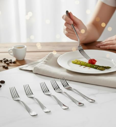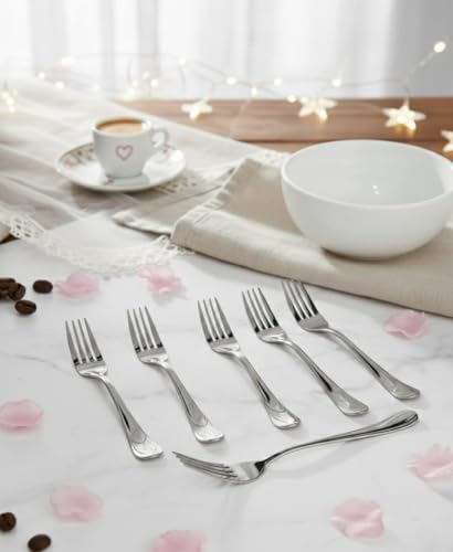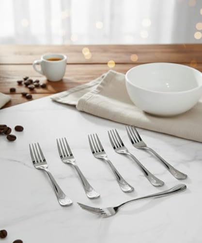 Generic - 18/10 Stainless Steel Table Fork Set, 6 Pieces, Rustproof, Dishwasher Safe, SUS 304