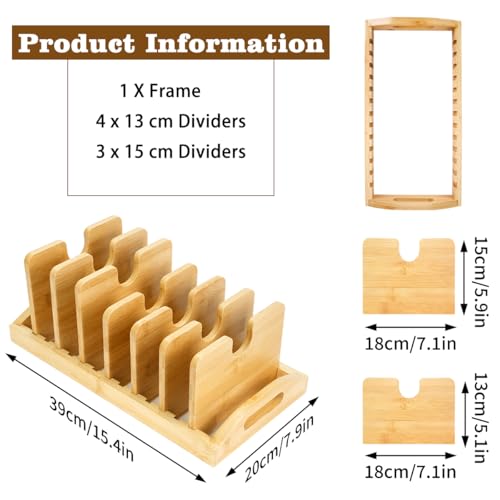 TIESHUO - 1PC Bamboo Pot Lid Organizer Wooden Pot Lid Holder Pot and Pan Organizer Drawer Organizer, Kitchen Cabinet Storage Rack for Pot Lids, Pans, Cutting Boards & Baking Sheets, Dinner Plates