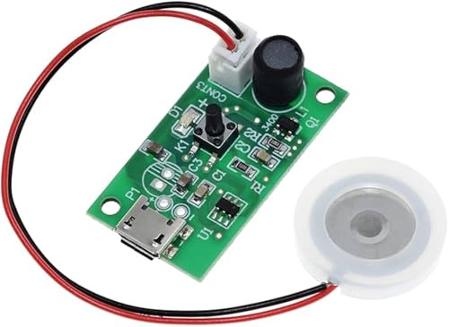 - USB Mini Humidifier DIY Kits Mist Maker and Driver Circuit Board Fogger Atomization Film Atomizer Sheet Mini Oscillating Description: 100% brand new high-quality product, made of high-quality materials, compact in size, and easy to install. Microporous physicochemical tablets: fine mist particles, large mist, high mist, wide coverage, and non-wetting tabletop. Variety of functions: various sprays, adjustable fog amount, colorful gradual change lights, and regular shutdown. High efficiency and stability, dynamic spray, long service life. Wide application range: DIY self-made, plant moisturizing, and product application.