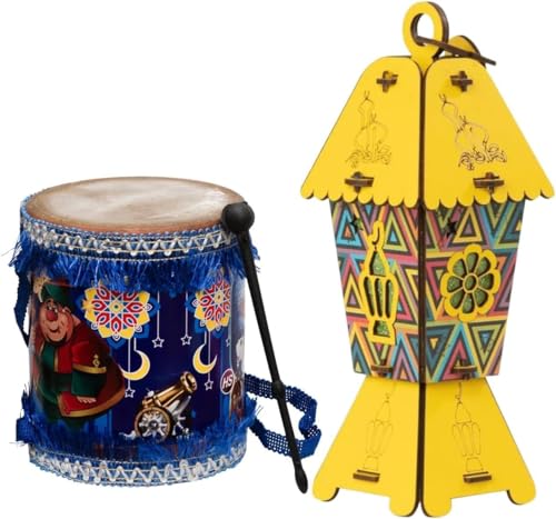 Generic - فانوس رمضان للأطفال عروض رمضان (2 قطع) طبلة رمضان + فانوس رمضان كبير للأطفال مقاس 30 سنتي فى كره مضى