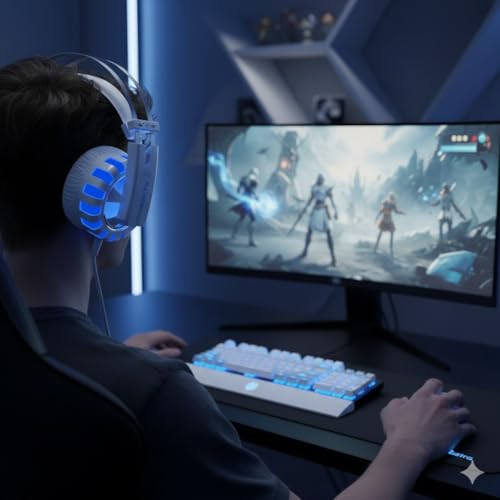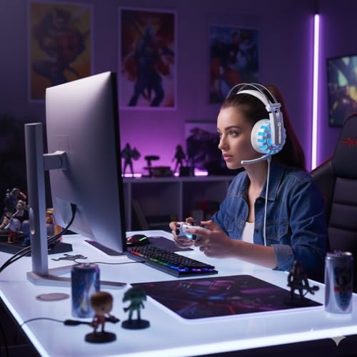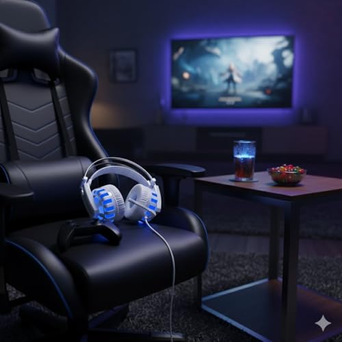 Generic - سماعة رأس G1 للألعاب سلكية بصوت محيطي وميكروفون مدمج عالي الحساسية، إضاءة ليد ملونة، تصميم مريح وكابل بطول2.5 م