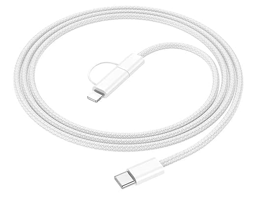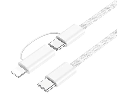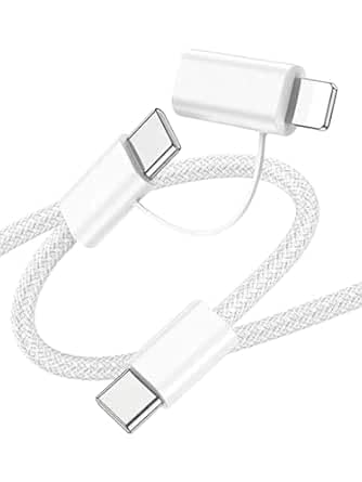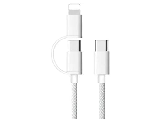 Generic - كابل شحن مضفر 2 في 1 نوع سي الى نوع سي + نوع L من 8 دبابيس الي تايب سي ، 60 واط بي دي شحن فائق السرعة، 1 متر