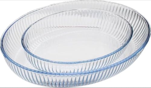 Generic - طقم طاجن بيضاوى زجاج 2 قطعه تركي للفرن غسالة الاطباق MICROWAVE وتقديم مباشرة مقاس 34 مقاس 25