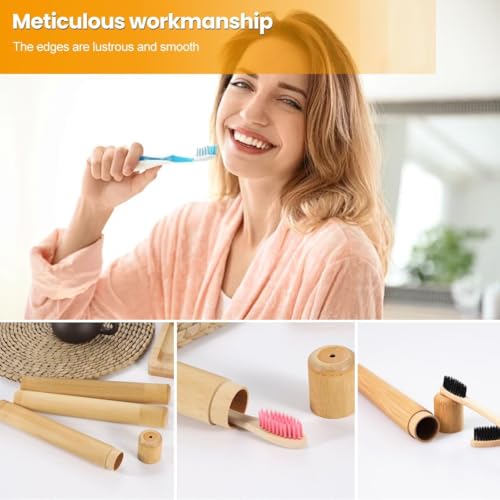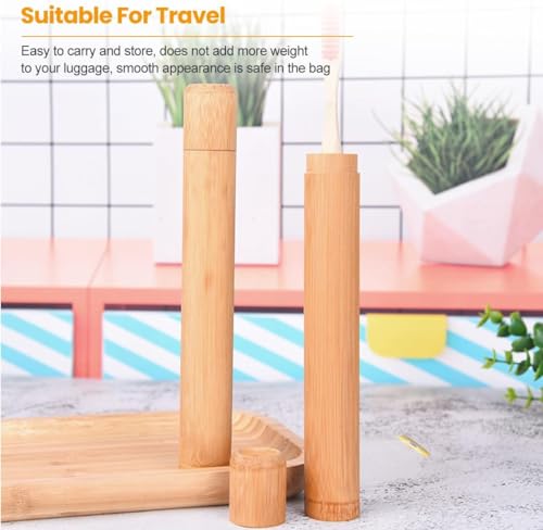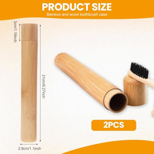 fashion mania - 2 Pack Bamboo Toothbrush Travel Holder 8.3 Inch Natural Toothbrush Case Cover