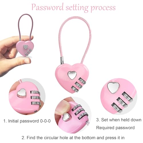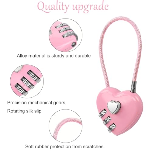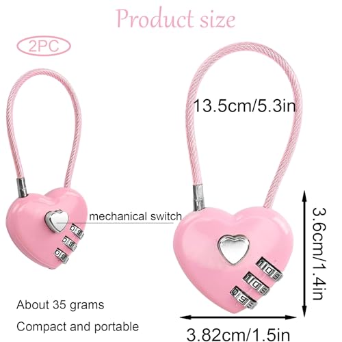 - 【Humanized Design】These 2 pink padlock feature a 3-digit heart-shaped dial, you can set your own combination while gym padlock appropriate size and moderate weight ensure convenient use, storage, and portability. Wire padlock perfect for securing school gym lockers, backpacks, and luggage.