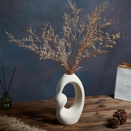 Generic - 2 Pieces Resin Vase for Modern Home Decor, Minimalist Nordic Bohemian Centerpieces, Round Pampas Vase Matte Donut Art Aesthetic for Room, Office, Farmhouse Decor, White