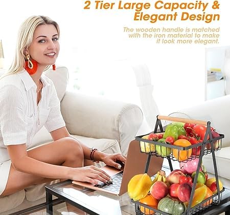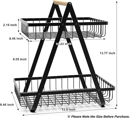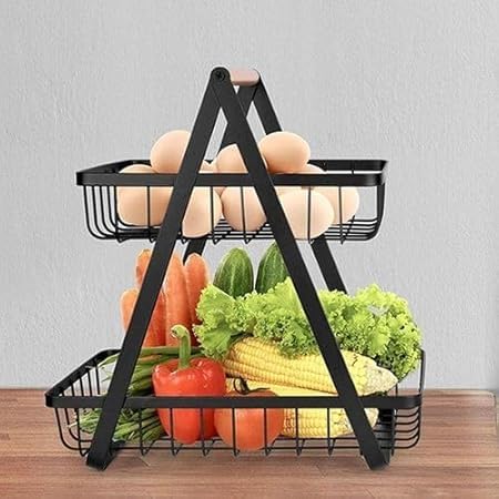 Generic - 2-Tier Detachable Fruit Vegetable Bread Snack Holder Stainless Steel Kitchen Office Rack Black