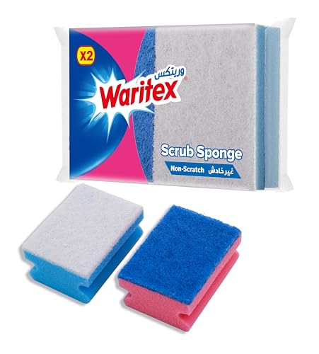 WARITEX - إسفنجة تنظيف مواعين بوجهين – 2 قطعة من Waritex – غير خادشة – للأسطح الحساسة – مع حماية للأظافر