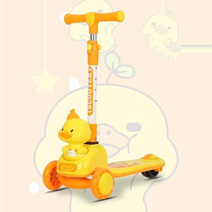 - سكوتر بتصميم بطة بلون أصفر، وصف الفئة العمرية: للأطفال الصغار، مزايا خاصة: مقبض قابل لتعديل الارتفاع، أقصى وزن يمكن تحمله 100 كجم، عدد العجلات: 3، مادة العجلات: بولي يوريثين، مادة الإطار: الألومنيوم، وزن المنتج: 3.5 كجم، نوع المقود قابل للتعديل.