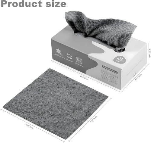Generic - 20 Pieces Microfiber Cleaning Cloth - Reusable Wipes Box - Multi-Purpose Microfiber Towel for Home Kitchen Car Glass Towel (Grey)