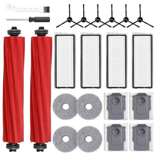 AnDongo - 22 Pack Replacement Accessories for Roborock Qrevo S/Qrevo Pro/Qrevo Plus/Qrevo MaxV Robot Vacuum Cleaner, 2 Main Brush 4 Filter 4 Dust Bags 4 Mop Pads 6 Side Brush 1 Cleaning Brush 1 Screwdriver