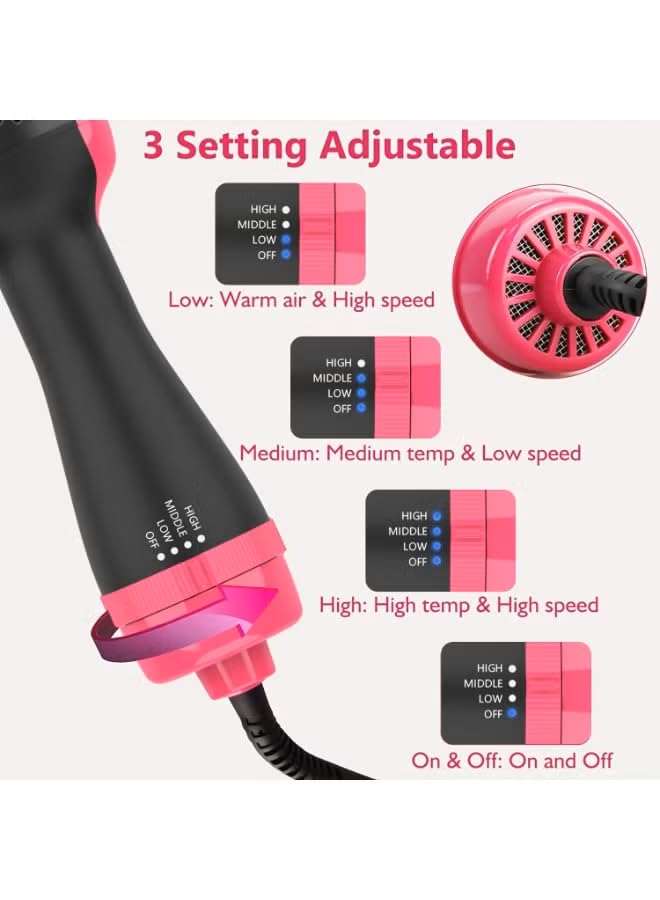 Generic - فرشه استشور و مجفف الشعر الكهربائية الاحترافية ، فرشاة تصفيف الشعر بالهواء الساخن و مجموعة من الهدايا مع حقيبة أنيقة للحفاظ على فرشاة ، 2500 واط مع تقنية الإيونات النغية وتدوران 360 درجة - بينك