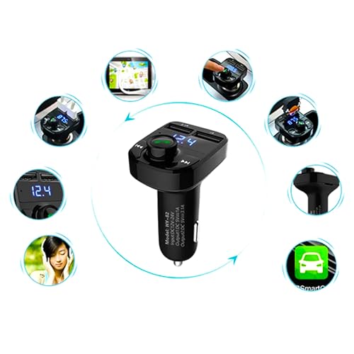 Generic - 25W Bluetooth FM Transmitter, Bluetooth 3.0 MP3 Player Support Connectivity Wireless Radio Adapter Kit FM & Speaker Transmitter Car Charger, Voltage Display LED, Hands-Free Calling, Dual USB + TF Card