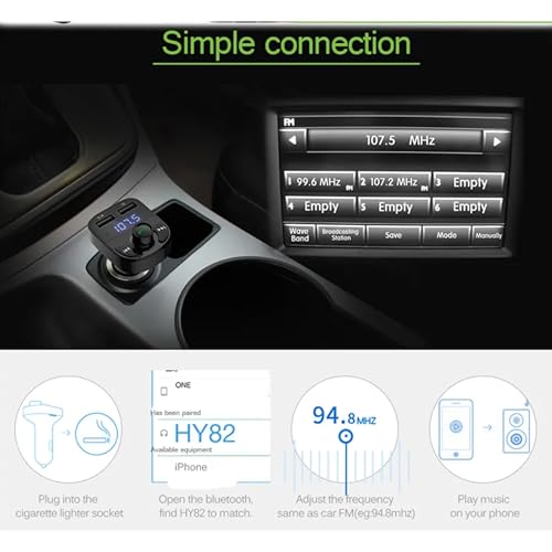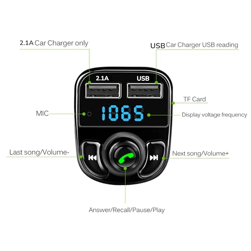 - Hands-free Calling: Just one click when receiving a call, the Bluetooth FM transmitter will provide you with the hands-free function and safer driving experience.