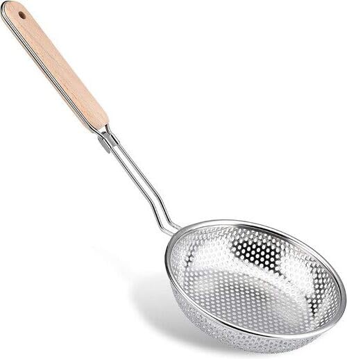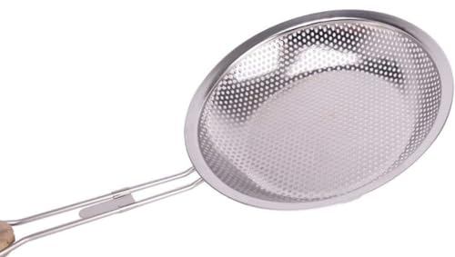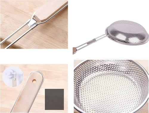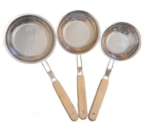 Generic - مصفاة زيت صغيرة من الستانلس ستيل، سلة شبكية للبطاطس بمقبض خشبي مجموعه من 3 قطع مقاس (14-16-18) سم
