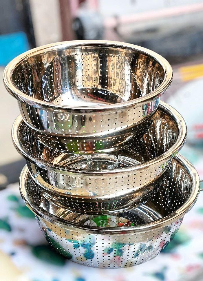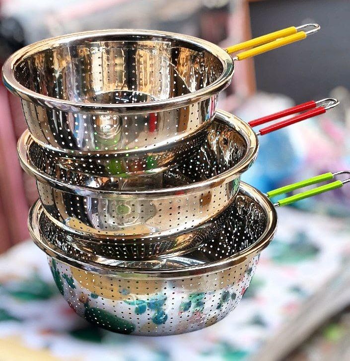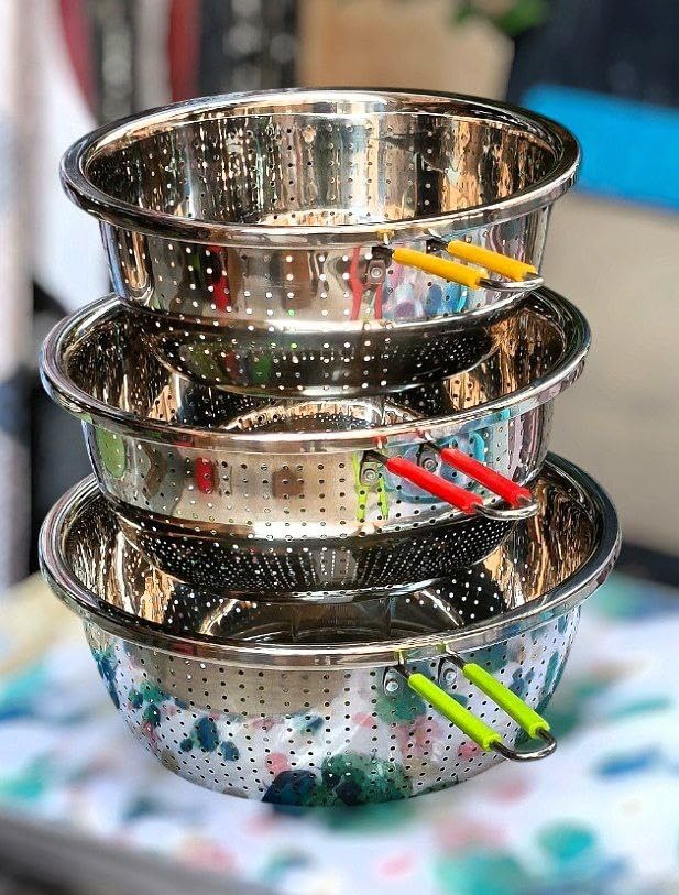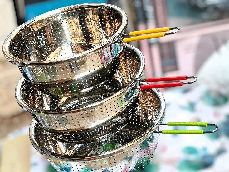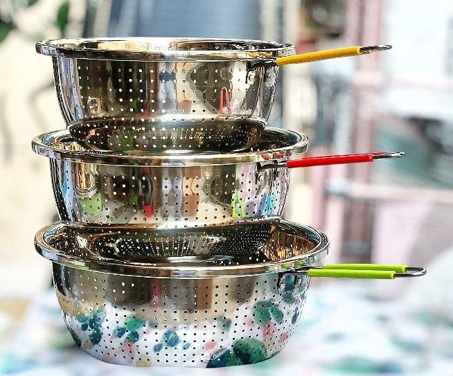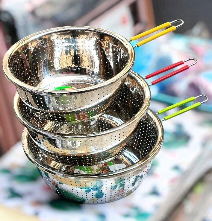 Generic - طقم 3 ق مصفاه خصروات استانليس تيل 18/10 بيد سيليكون الوان