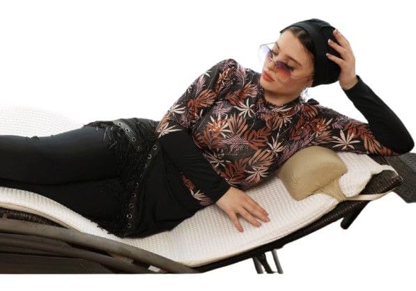 هنادي - مايوه بوركيني حريمي 3 قطع بنطلون وتوب وبونيه ملابس سباحة بتصميم محتشم للبحر وحمام سباحة خامة مرنة مقاومة للكلور سريعة الجفاف مريحة 304
