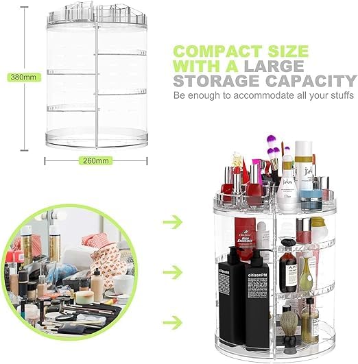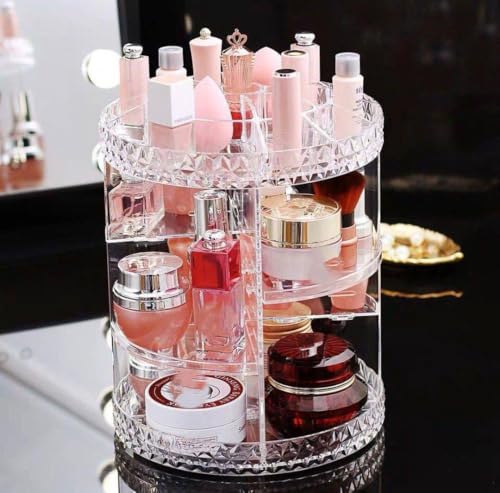 Generic - منظم مكياج و التجميل المكونة من 3 دور ، دوران 360 درجة مصنوع من أكريليك شفاف نقي ، لتمنظم ادوات المكياج و التجميل