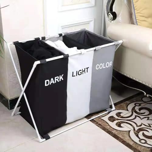 Generic - 3 Compartments Divided Laundry Basket - Different Colors | Practical and Stylish | Waterproof Oxford Material | Foldable and Easy to Store | Ideal Assistant for Sorting Laundry | - Generic
