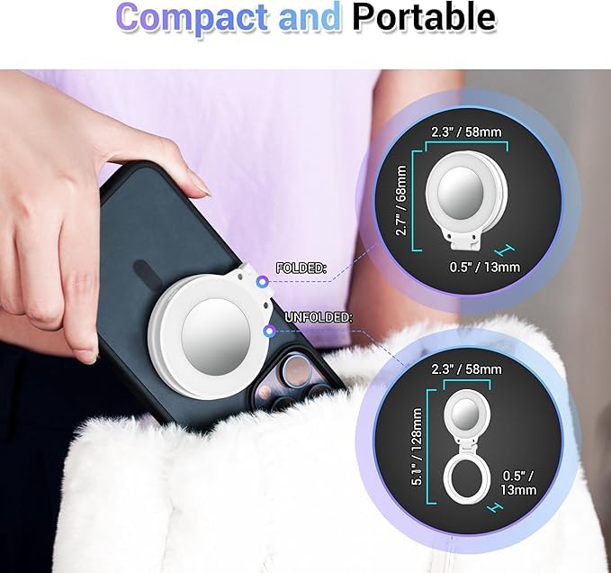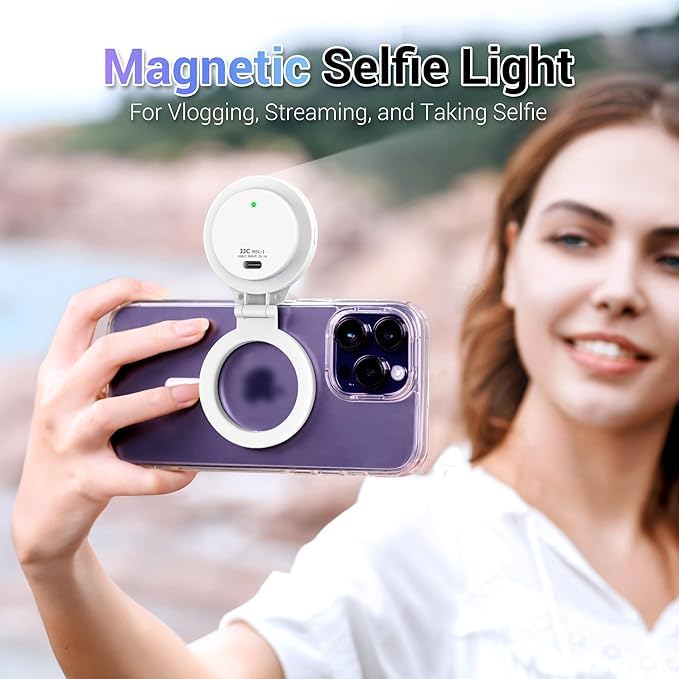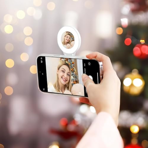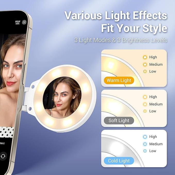 Generic - مصباح سيلفي بمشبك قوي للجوال مع 3 اوضاع اضاءة قابلة للتعديل/مراة محدبة مدمجة، حلقة اضاءة LED قابلة لاعادة الشحن لصور السيلفي والبث المباشر من لوكي بوي (بنك)