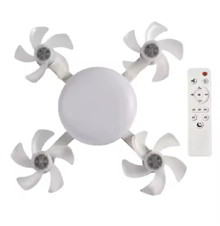 Generic - مروحة سقف هادئة مزودة بجهاز تحكم عن بعد و3 اضاءة LED و4 مراوح