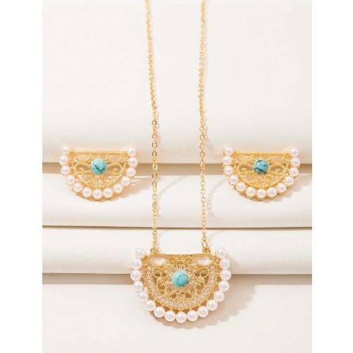 Generic - 3 Piece Cubic Zircon Faux Pearl Jewelry Set