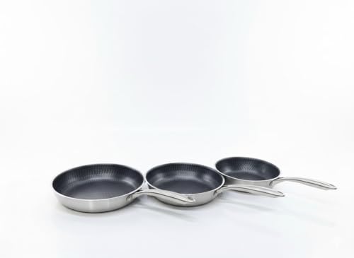 • 3-piece frying pan set in different sizes to meet all your home kitchen cooking needs.