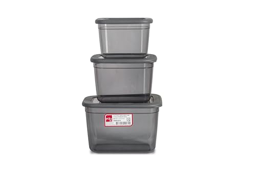 Generic - 3 Piece Refrigerator Box for Food Storage Healthy Plastic Clear,Sizes of Boxes (2.3 liter,1.3 liter,800 ml) -Transparent Grey