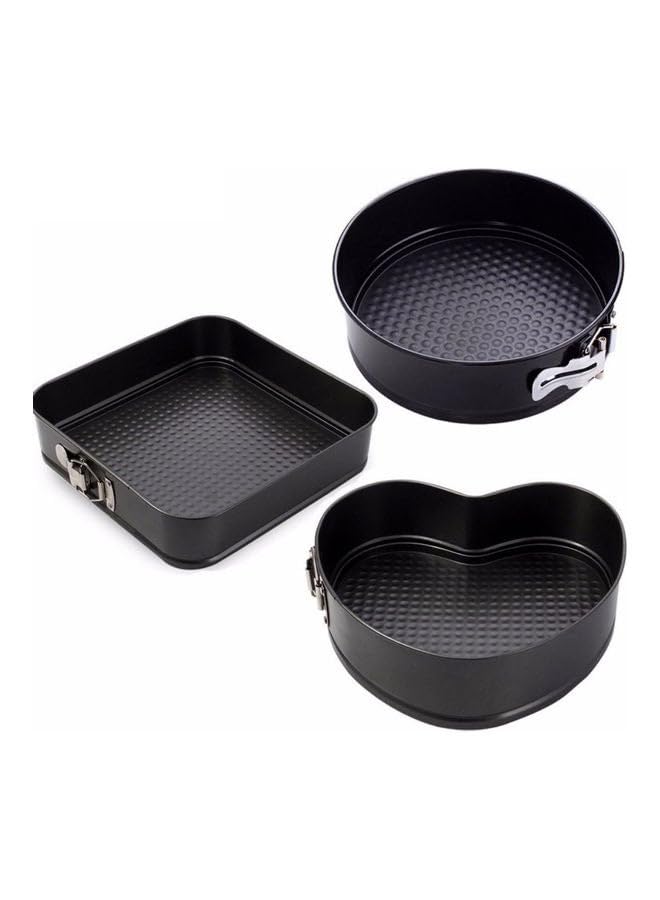 GENERIC - 3 Pieces Non Stick Removable Bottom Round Heart Square Shape Cake Mold Set Black 26x26x2cm