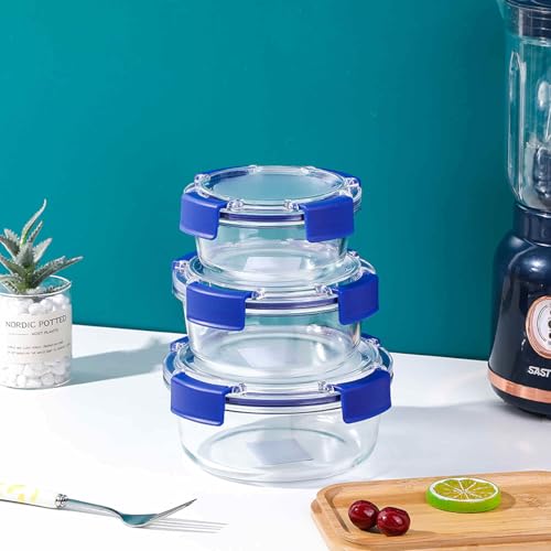 Generic - 3 Sizes Round Glass Fridge Container Set with Airtight Lids for Salad, Vegetables, Fruits, Practical Kitchen Organization and Daily Storage Control