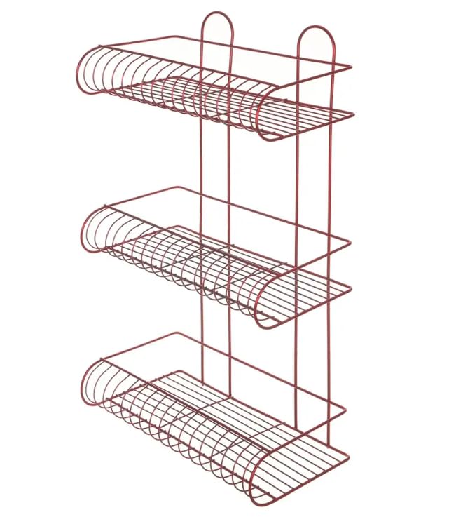 Generic - وحدة تخزين زاوية الحمام من 3 طبقات، منظم سلة سلكية بلون احمر غامق، 38 × 57 × 15 سم