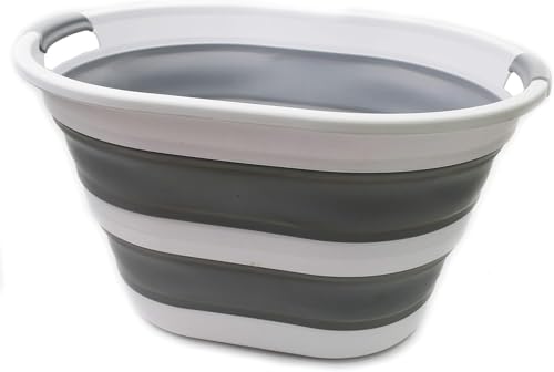 Generic - 34L Plastic Foldable Laundry Basket - Portable Oval Basin Basket (Grey)