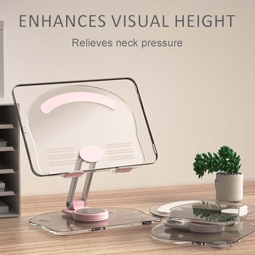 - [Adjustable & Foldable] The three-shaft structure increases the stability of this tablet holder and makes it adjustable in height. Additionally, this tablet stand is compact and foldable, convenient to storage and carry.