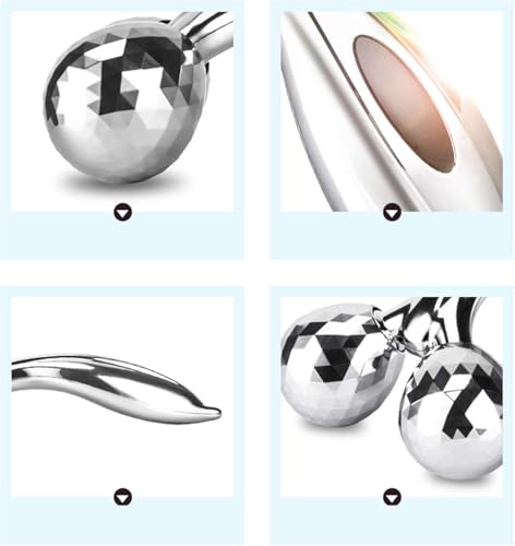 - تصميم فاخر: أسطوانة وجه أنيقة بلمسة نهائية فضية تتميز بكرات تدليك كريستالية مزدوجة ومقبض مريح لقبضة مريحة وتدليك فعال للوجه