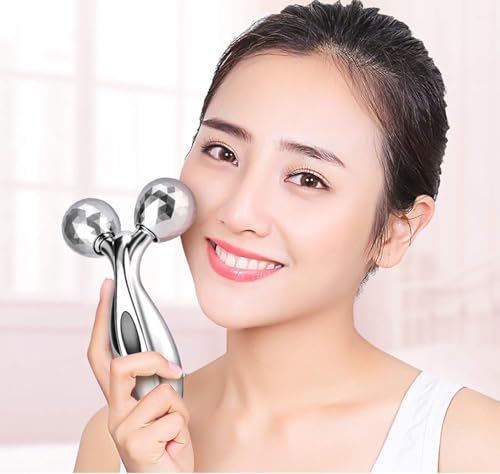 Generic - أداة تدليك الوجه الدوارة ثلاثية الأبعاد مع كرات كريستالية، متوفرة بلون فضي، أداة تدليك الوجه والتجميل