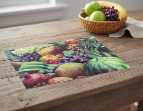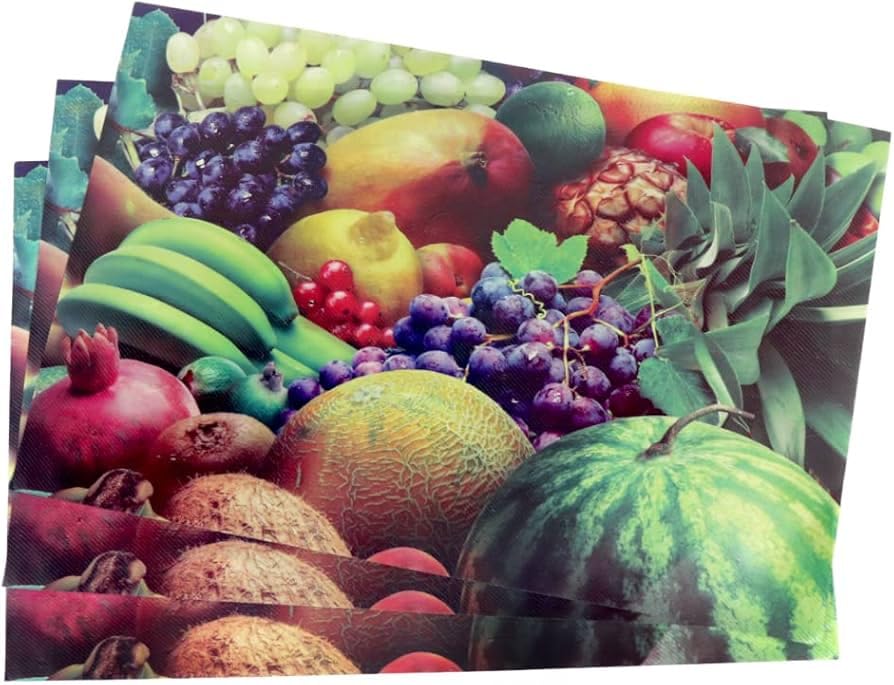 Generic - طقم مفارش ثلاجة بلاستيك مكون من 4 قطع مطبوع عليه فواكه مقاس (49 × 34 سم)