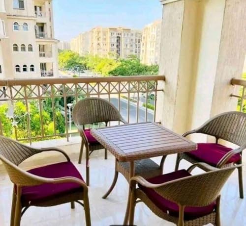 Generic - طقم جاردن 4 كرسي بيج و طاولة مقاس 70 * 70