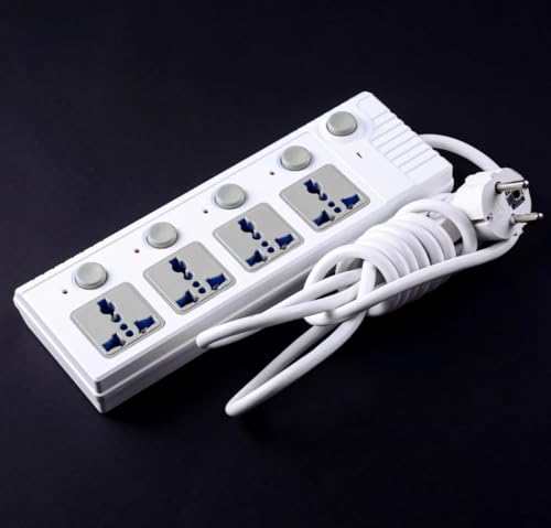 Generic - مشترك كهرباء 4 عين mk مفتاح منفصل لكل واحد ومؤشر اضاءه مع سلك بطول 1.5 متر بقوة 16 أمبير (2500W)