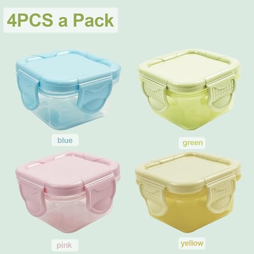 Generic - علب صوص بلاستيك صغيرة 4 قطع مع غطاء مانع للتسريب – لتخزين الكاتشب والعسل والسناكس والوجبات الجاهزة صغيرة الحجم سهلة الاستخدام واللانش بوكس اليومي