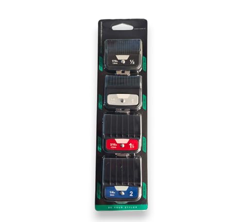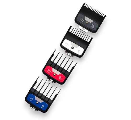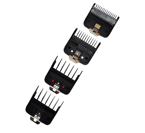 - محتوى المجموعة: تتضمن 4 أمشاط توجيه معدنية لماكينة الحلاقة بمقاسات متعددة لتناسب احتياجات القص المختلفة