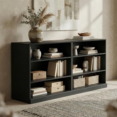 Casaphoria - 41" Wooden Book Shelf, 2 Shelf Bookcase, Modern Bookshelf with Adjustable Shelf for Home Office, Study Room, Black