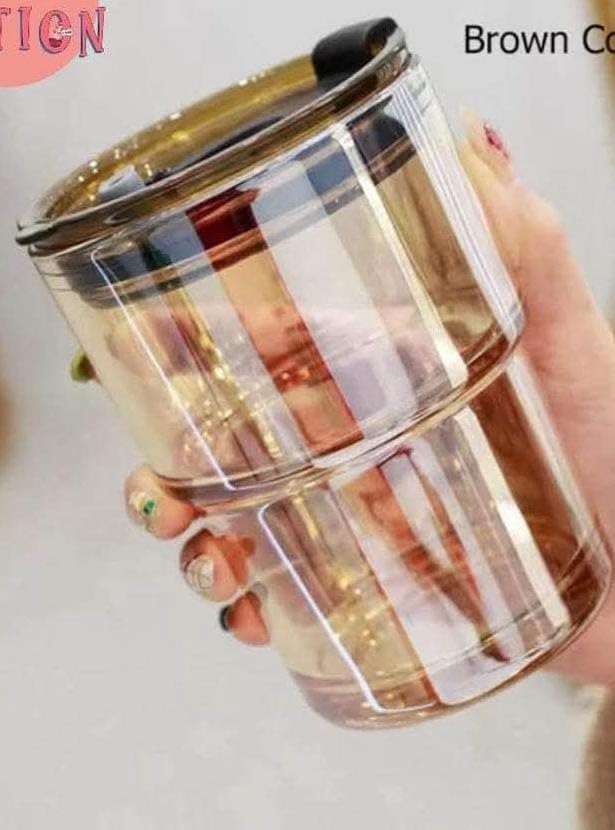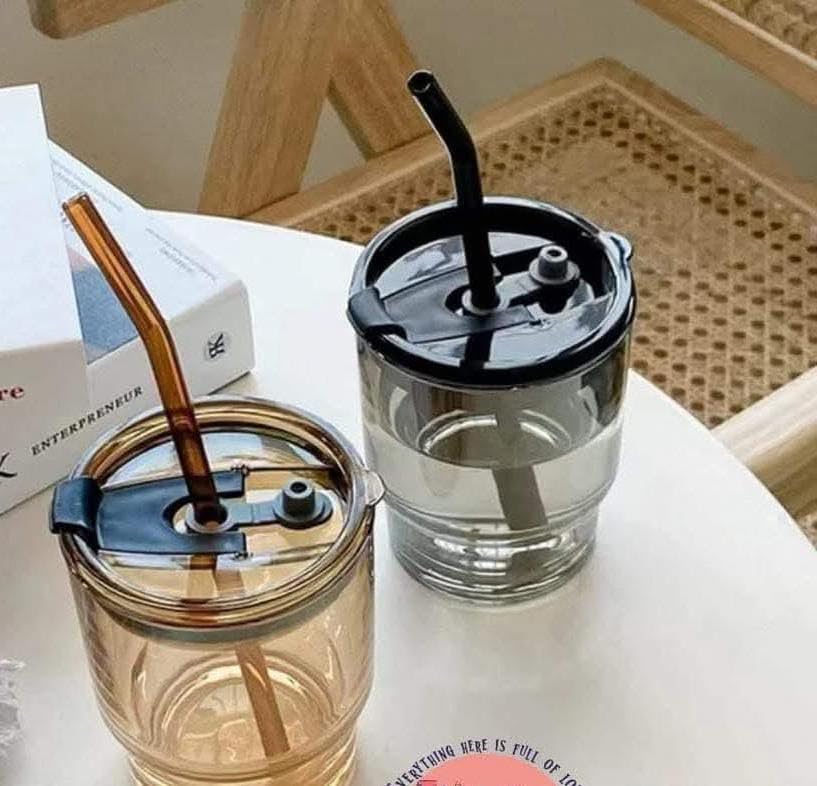 - تصميم مبتكر: كوب زجاجي بسعة ٤٥٠ مل مع غطاء محكم وقش قابل لإعادة الاستخدام، مثالي للمشروبات الساخنة والباردة