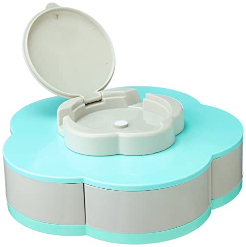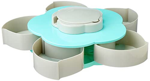 BB - طبق تسالى بلاستيكي على شكل وردة تفتح وتغلق بمقبض مقسم لـ 5 اقسام بحامل موبايل 29×9 سم - رمادي×اخضر من بي