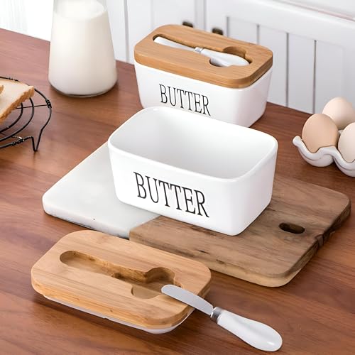 Generic - طبق الزبدة - طبق زبدة من الخزف الأنيق مع الغطاء والسكين (500 مل) ، سعة كبيرة للحفاظ على الزبدة طازجة ، والتي تتميز بأغطية سيليكون عالية الجودة آمنة. (قطعتين)